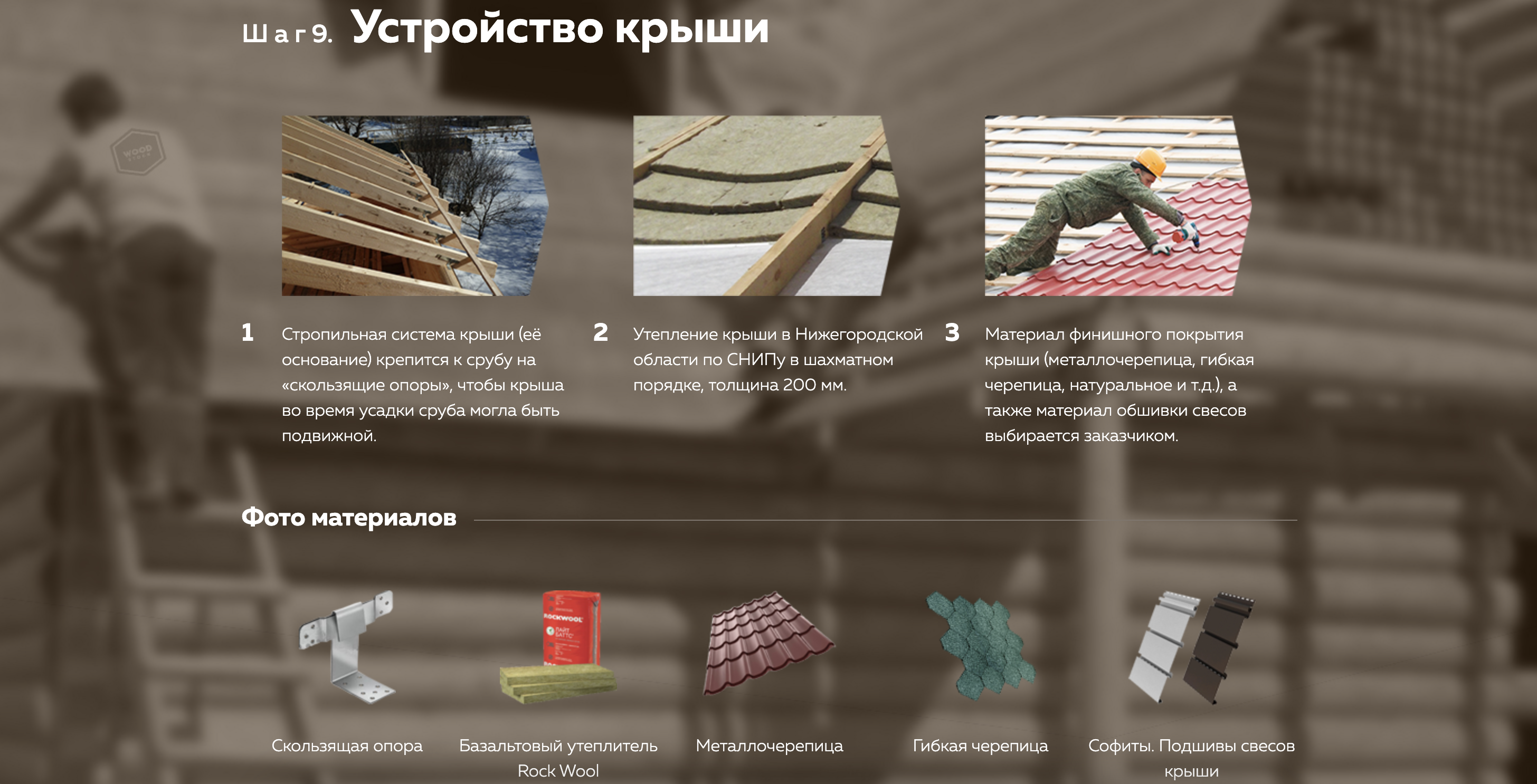 Подготовили текстовый контент: убрали лишнее, сделали акцент на надёжности, технологии и этапах работ.