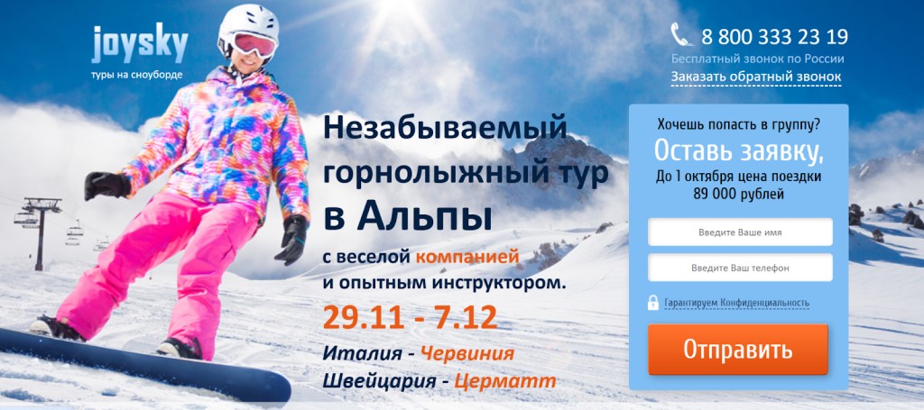 Разработать лендинг, который продемонстрирует туры и увеличит количество бронирований.