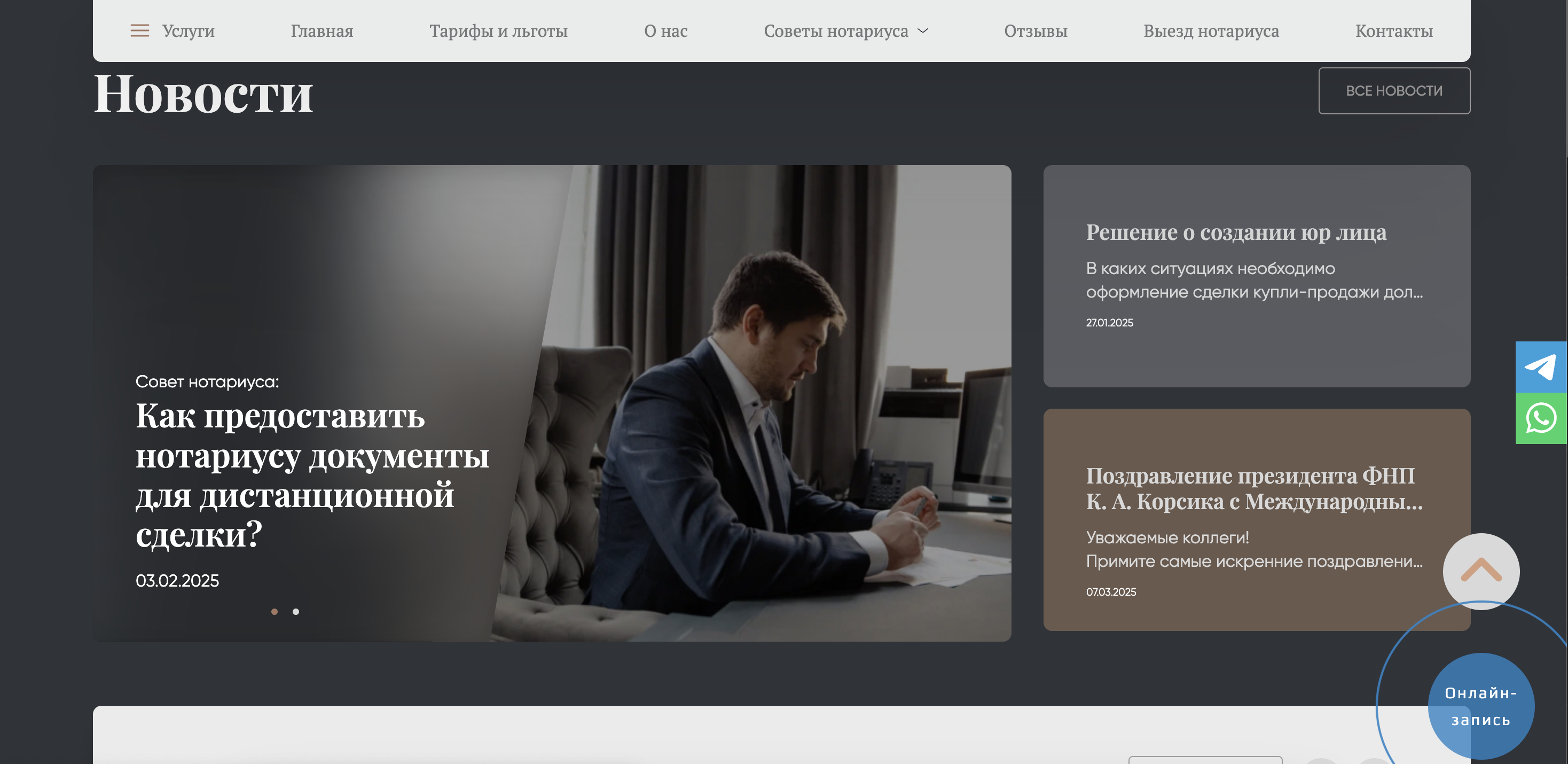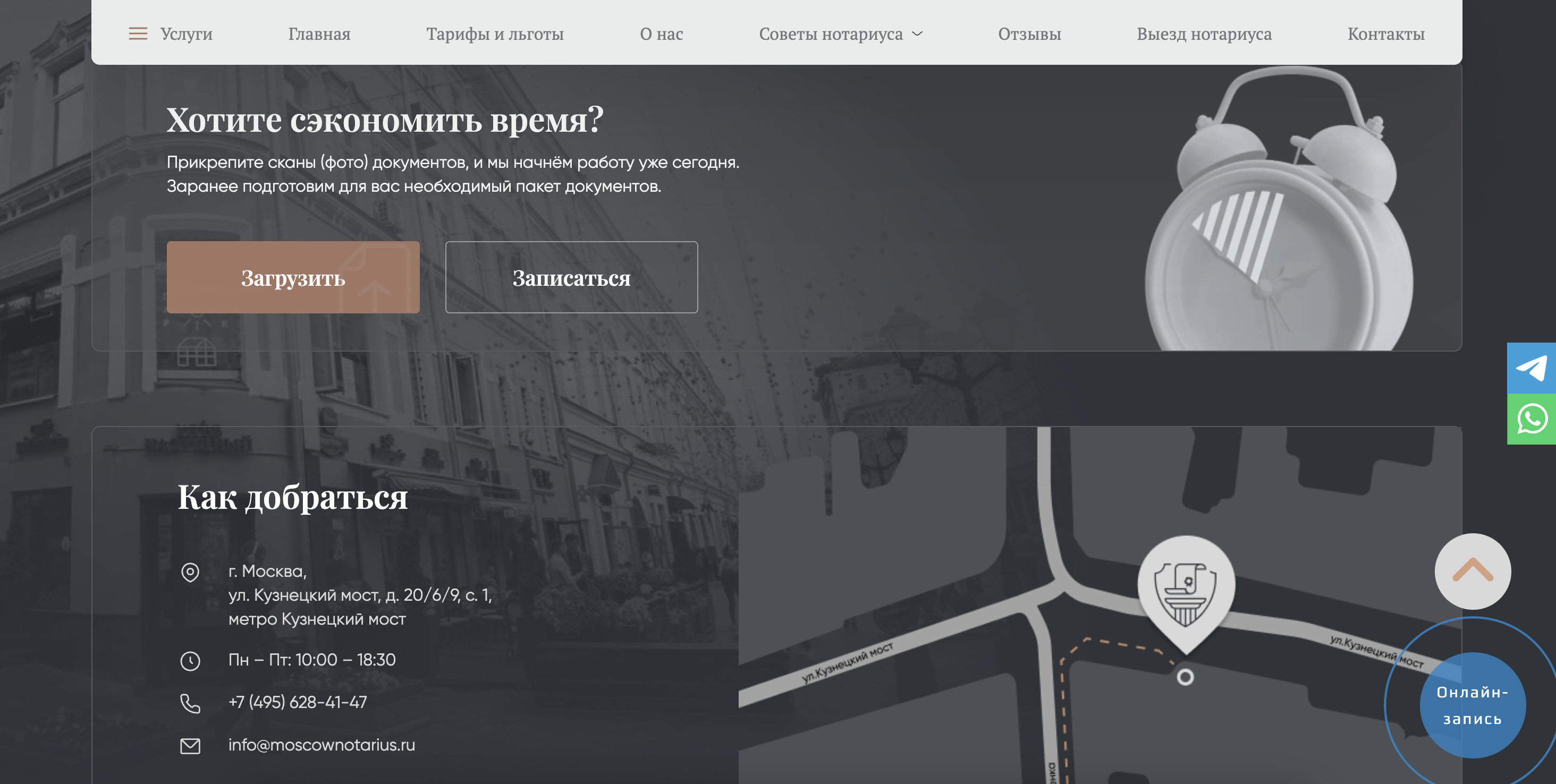 Интеграция форм: добавлены формы обратной связи, кнопка WhatsApp и активный номер телефона для быстрого контакта.
