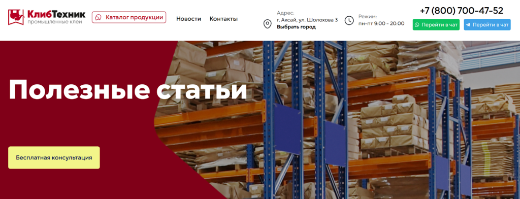 Сайт вошел в ТОП‑20 по запросам «промышленный клей для мебели».