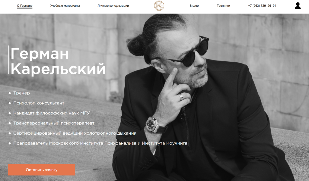 Герман Карельский — российский психолог, сексолог, нарколог, кандидат философских наук и специалист в области трансперсональной психологии, сертифицированный ведущий холотропного дыхания. Специализируется на: