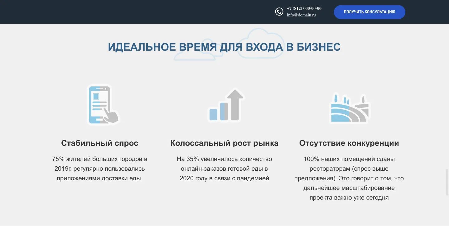 Разработан современный, простой и удобный лендинг. Посадочная страница позволит получить максимальную конверсию от рекламных кампаний.