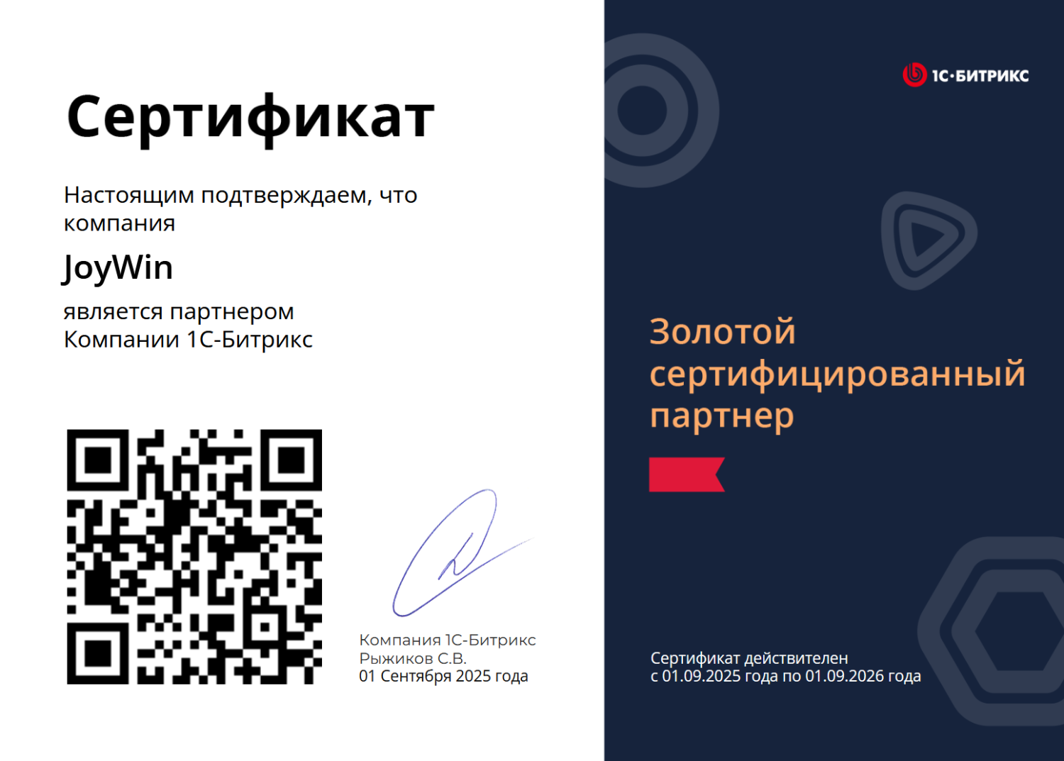 Мы золотые партнёры 1С-Битрикс